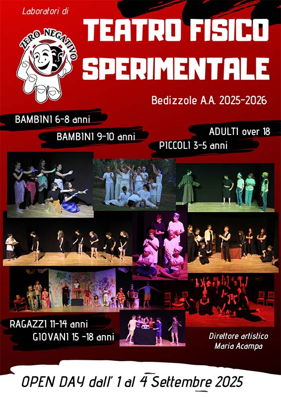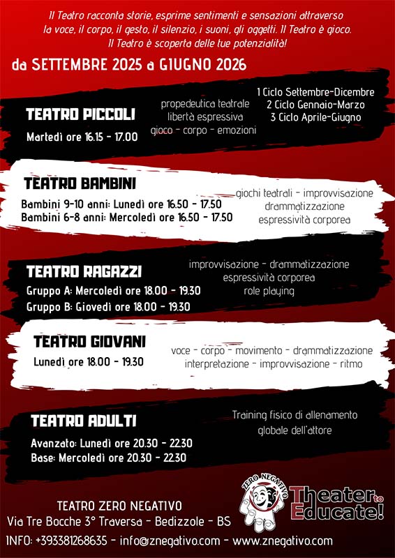 ADULTI (over 18): AVANZATO: Lunedì ore 20.30-22.30 BASE:  Mercoledì 20.30-22.30 Training fisico di allenamento globale dell'attore